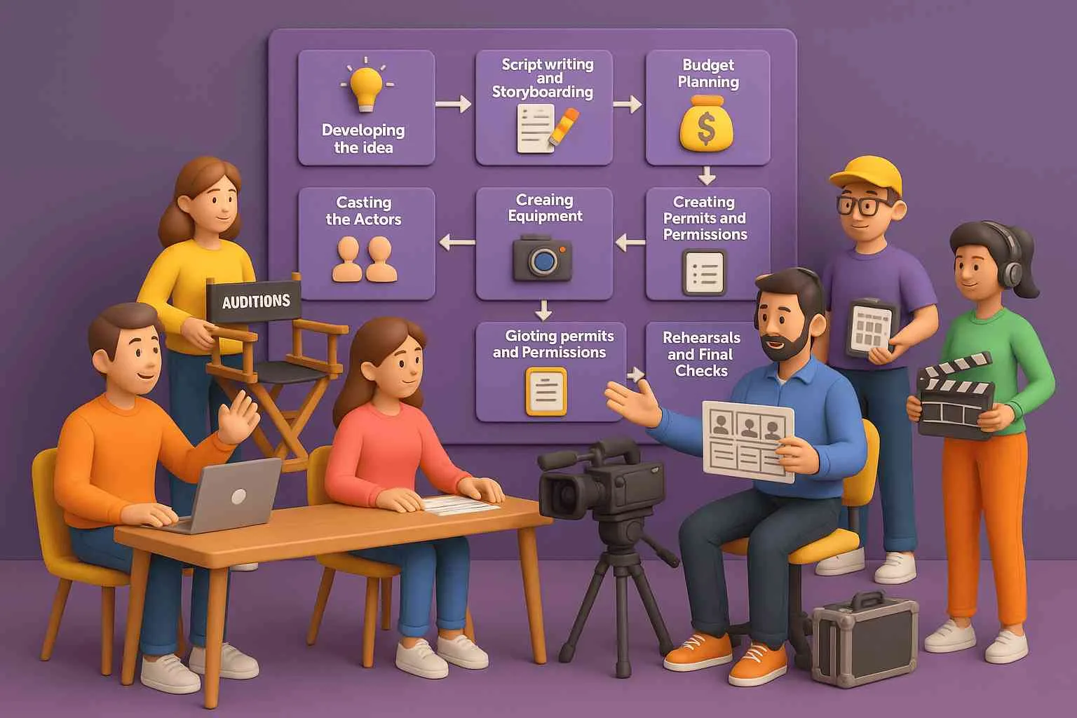 From idea development to script writing and team setup, all key tasks are done here. A strong pre-production plan saves time and avoids mistakes.