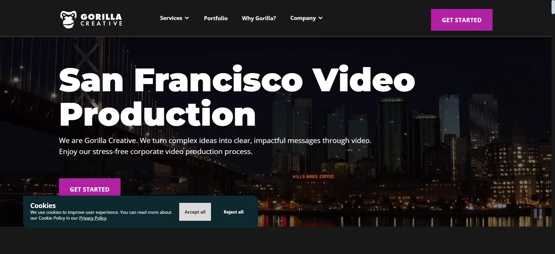 Gorilla Creative is a full‑service corporate video production company based in San Francisco. They turn complex ideas into clear, impactful messages. Their team is known for a stress‑free process and results‑driven storytelling.